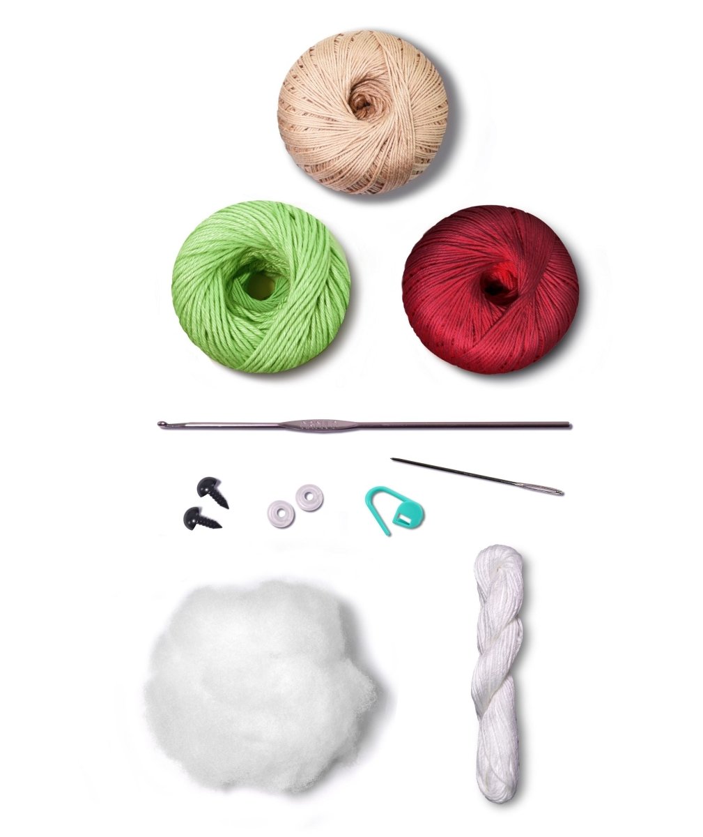 Included in the kit are high-quality Circulo Amigurumi yarns, made from 100% cotton, which ensure the finished strawberry is soft, durable, and perfect for displaying or playing with. The cotton yarn is smooth and easy to work with, allowing for even and neat stitches that showcase the beautiful details of the strawberry’s design. The yarn comes in bright, vibrant shades of red for the body, green for the leaves, and small accents of white for the strawberry seeds. These rich colors capture the essence of a ripe, juicy strawberry, making the finished product visually appealing and fun.