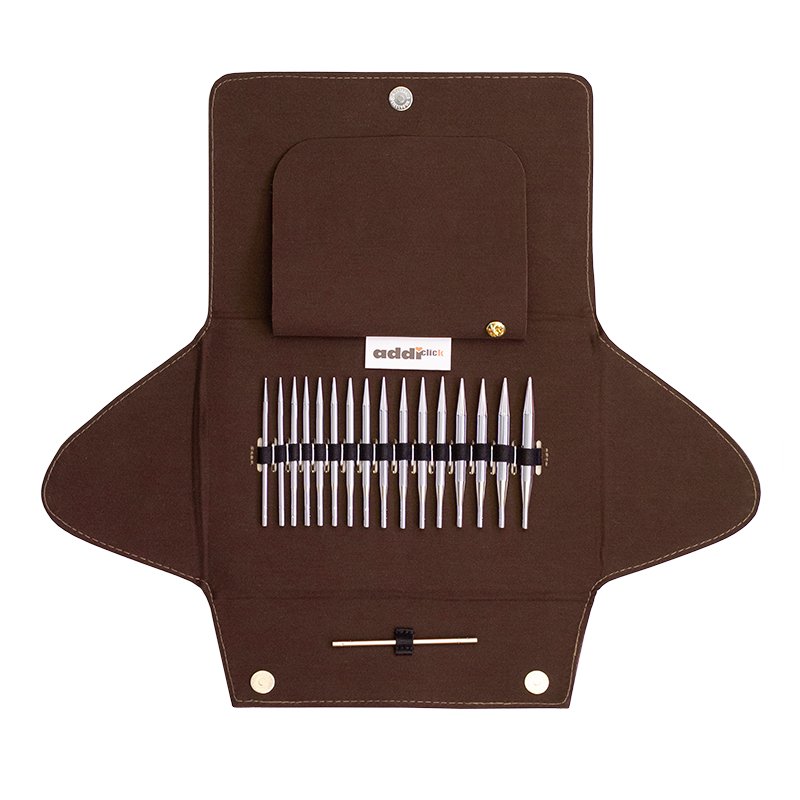 addiClick Lace Short Set, is perfect for knitting smaller diameters, such as baby clothes, sleeves, and socks. Featuring extra short, finely pointed tips (3.5 – 8 mm), these needles excel at knitting delicate patterns with very fine yarns. The set includes five red lace ropes (40, 50, 60, 80, and 100 cm) and two couplings (long and short) for more versatility. The brass tips (90 mm) are white bronzed, ensuring durability and smooth knitting.